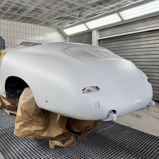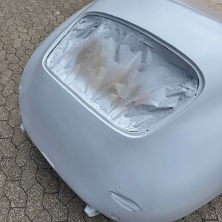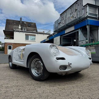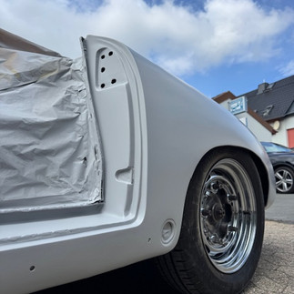 Ergebnis (bisheriger Stand): Die Karosseriestruktur wurde präzise überarbeitet und für die weitere Instandsetzung vorbereitet. Erste Teilbereiche befinden sich bereits im Lackaufbau. Nach Abschluss der finalen Arbeitsschritte wird der Speedster optisch wie technisch im authentischen Originalzustand erstrahlen.